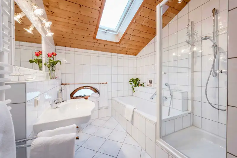 - 1 Badezimmer mit Badewanne, WC und Föhn